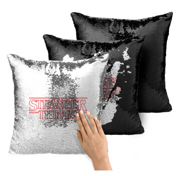 Stranger Things Logo, Μαξιλάρι καναπέ Μαγικό Μαύρο με πούλιες 40x40cm περιέχεται το γέμισμα