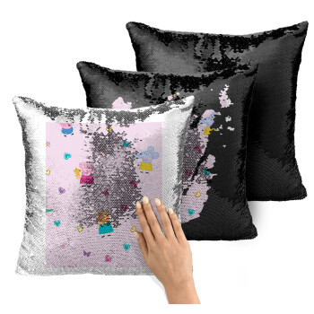 Πέππα το γουρουνάκι και οι φίλοι της, Μαξιλάρι καναπέ Μαγικό Μαύρο με πούλιες 40x40cm περιέχεται το γέμισμα