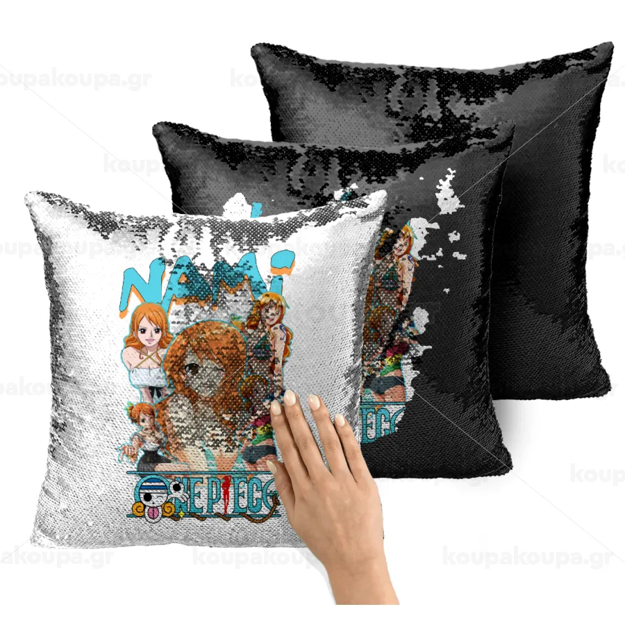 Nami One Piece, Μαξιλάρι καναπέ Μαγικό Μαύρο με πούλιες 40x40cm περιέχεται το γέμισμα