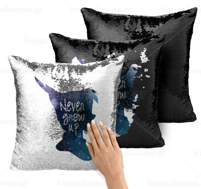 Never Grow UP, Μαξιλάρι καναπέ Μαγικό Μαύρο με πούλιες 40x40cm περιέχεται το γέμισμα