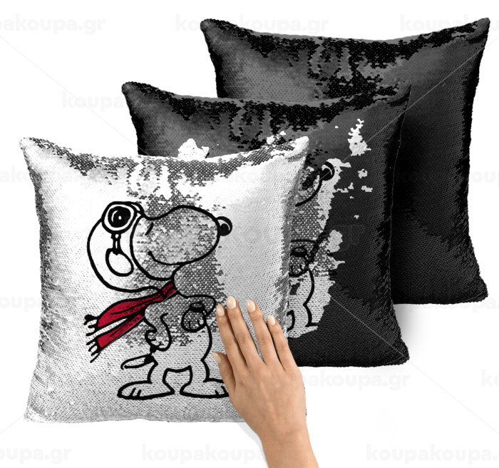 Snoopy ο πιλότος, Μαξιλάρι καναπέ Μαγικό Μαύρο με πούλιες 40x40cm περιέχεται το γέμισμα