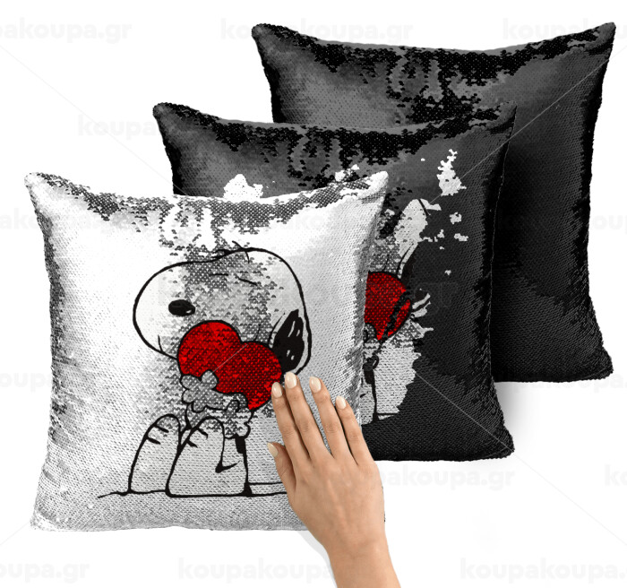 Snoopy, Μαξιλάρι καναπέ Μαγικό Μαύρο με πούλιες 40x40cm περιέχεται το γέμισμα