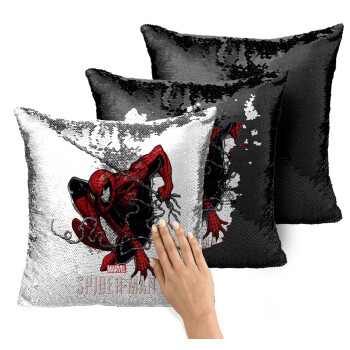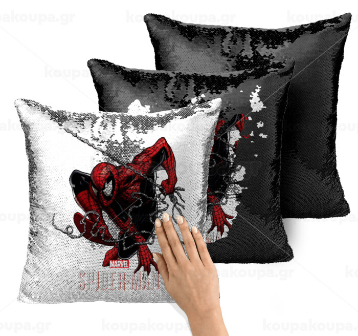 Spider-man, Μαξιλάρι καναπέ Μαγικό Μαύρο με πούλιες 40x40cm περιέχεται το γέμισμα