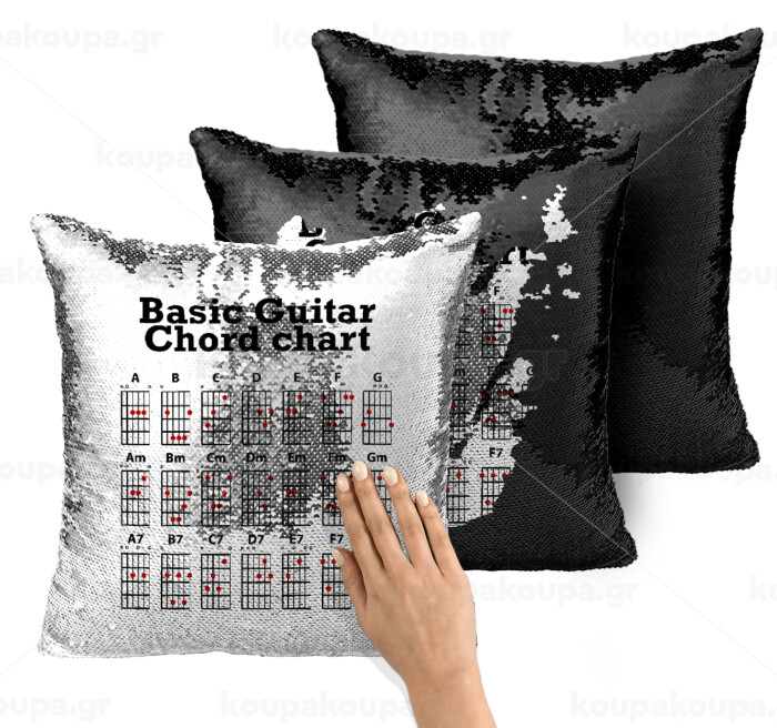 Συγχορδίες κιθάρας, Μαξιλάρι καναπέ Μαγικό Μαύρο με πούλιες 40x40cm περιέχεται το γέμισμα
