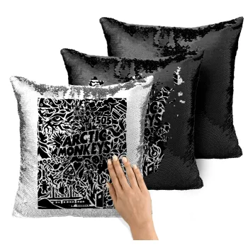 Arctic Monkeys, Μαξιλάρι καναπέ Μαγικό Μαύρο με πούλιες 40x40cm περιέχεται το γέμισμα