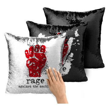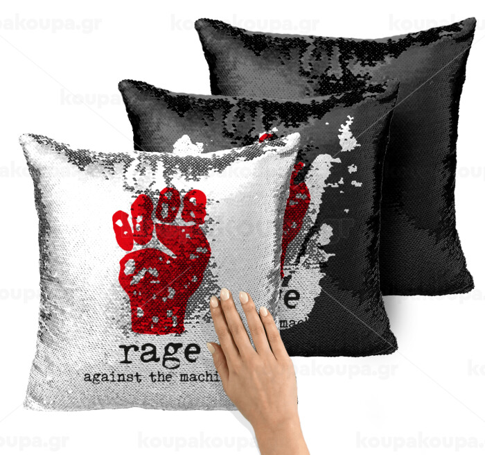 Rage against the machine, Μαξιλάρι καναπέ Μαγικό Μαύρο με πούλιες 40x40cm περιέχεται το γέμισμα