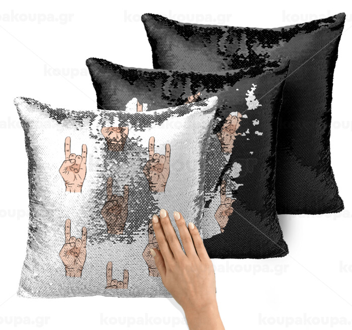 Rock hands, Μαξιλάρι καναπέ Μαγικό Μαύρο με πούλιες 40x40cm περιέχεται το γέμισμα