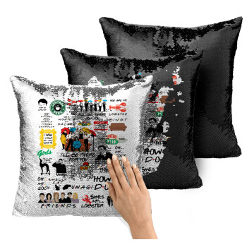 Friends, Μαξιλάρι καναπέ Μαγικό Μαύρο με πούλιες 40x40cm περιέχεται το γέμισμα