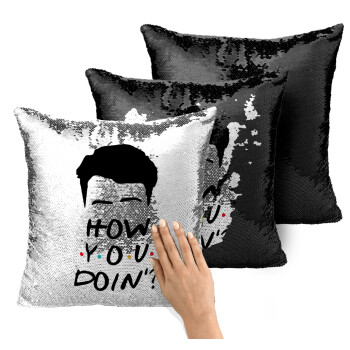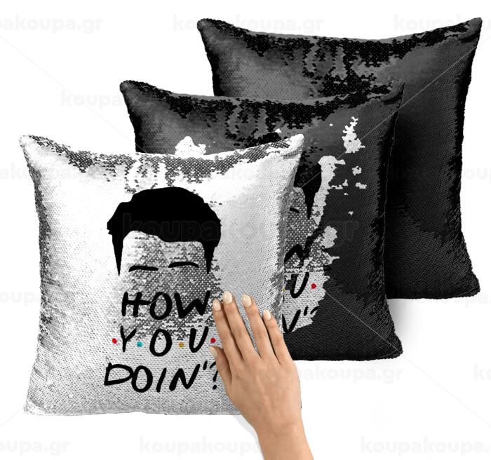 Friends how you doin?, Μαξιλάρι καναπέ Μαγικό Μαύρο με πούλιες 40x40cm περιέχεται το γέμισμα