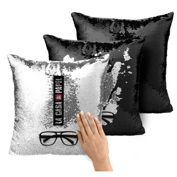 la professor, γυαλιά, Μαξιλάρι καναπέ Μαγικό Μαύρο με πούλιες 40x40cm περιέχεται το γέμισμα