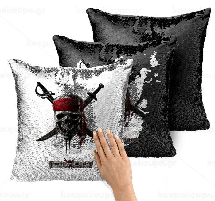 Pirates of the Caribbean, Μαξιλάρι καναπέ Μαγικό Μαύρο με πούλιες 40x40cm περιέχεται το γέμισμα