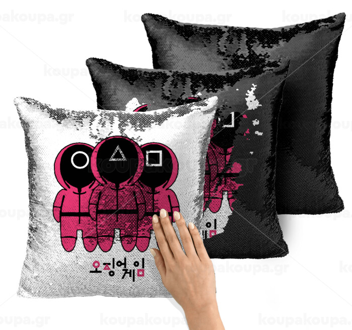 The squid game, Μαξιλάρι καναπέ Μαγικό Μαύρο με πούλιες 40x40cm περιέχεται το γέμισμα
