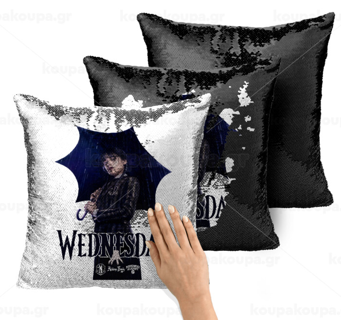 Wednesday rain, Μαξιλάρι καναπέ Μαγικό Μαύρο με πούλιες 40x40cm περιέχεται το γέμισμα