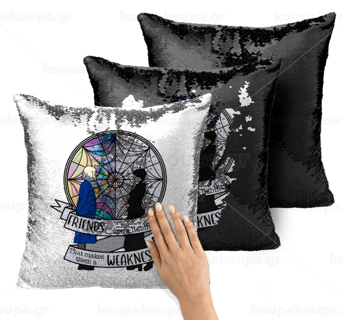 Wednesday window, Μαξιλάρι καναπέ Μαγικό Μαύρο με πούλιες 40x40cm περιέχεται το γέμισμα