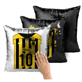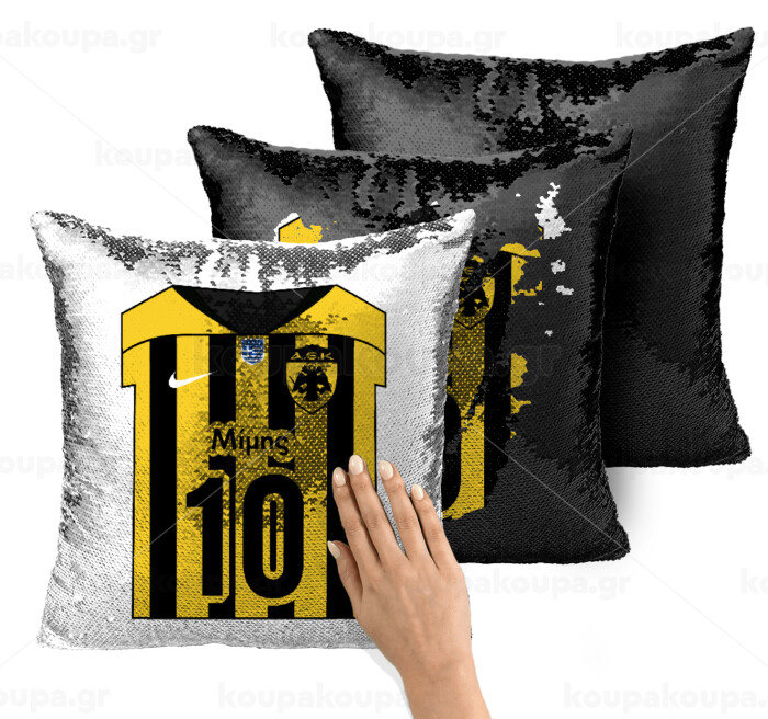 ΑΕΚ εμφάνιση, Μαξιλάρι καναπέ Μαγικό Μαύρο με πούλιες 40x40cm περιέχεται το γέμισμα