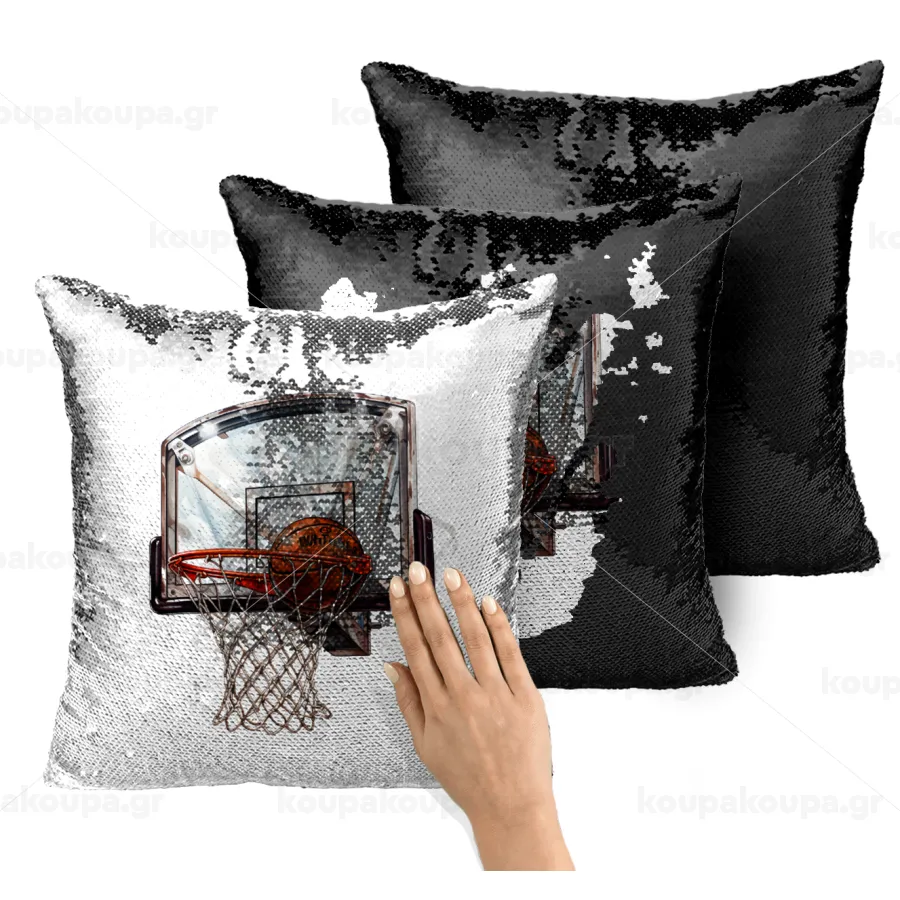 Basketball, Μαξιλάρι καναπέ Μαγικό Μαύρο με πούλιες 40x40cm περιέχεται το γέμισμα