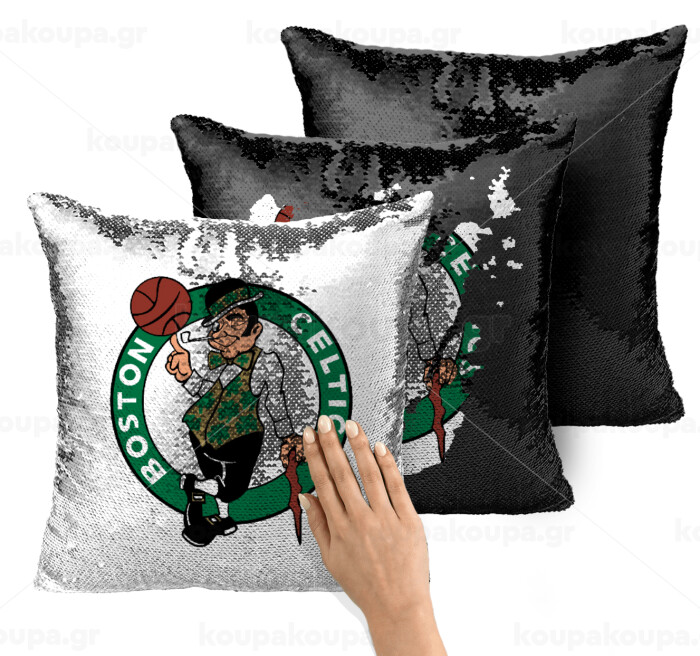 Boston Celtics, Μαξιλάρι καναπέ Μαγικό Μαύρο με πούλιες 40x40cm περιέχεται το γέμισμα