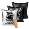 Judo Touch Me And Your First Lesson Is Free, Μαξιλάρι καναπέ Μαγικό Μαύρο με πούλιες 40x40cm περιέχεται το γέμισμα