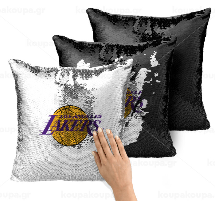 Lakers, Μαξιλάρι καναπέ Μαγικό Μαύρο με πούλιες 40x40cm περιέχεται το γέμισμα
