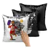 Ροντινέι, "ΚΑΤΩ ΑΠΟ ΤΗΝ ΠΑΝΣΕΛΗΝΟ ΜΟΥ!", Μαξιλάρι καναπέ Μαγικό Μαύρο με πούλιες 40x40cm περιέχεται το γέμισμα