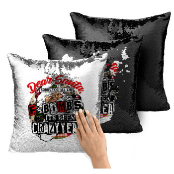 Dear Santa, sorry for all the F-bombs, Μαξιλάρι καναπέ Μαγικό Μαύρο με πούλιες 40x40cm περιέχεται το γέμισμα