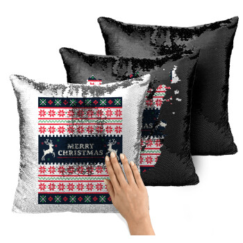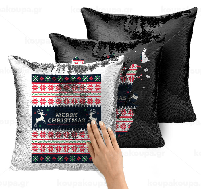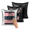Merry Christmas Vintage, Μαξιλάρι καναπέ Μαγικό Μαύρο με πούλιες 40x40cm περιέχεται το γέμισμα