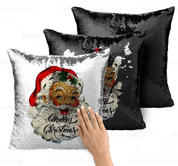 Santa vintage, Μαξιλάρι καναπέ Μαγικό Μαύρο με πούλιες 40x40cm περιέχεται το γέμισμα