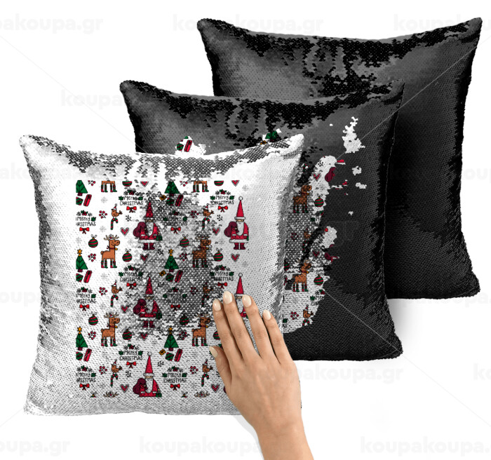 Santas, Deers & Trees, Μαξιλάρι καναπέ Μαγικό Μαύρο με πούλιες 40x40cm περιέχεται το γέμισμα