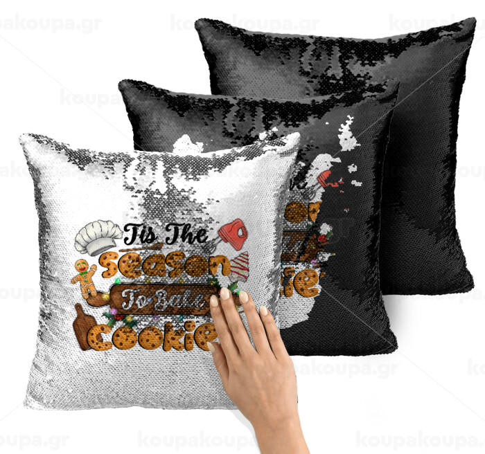 Tis The Season To Bake Cookies, Μαξιλάρι καναπέ Μαγικό Μαύρο με πούλιες 40x40cm περιέχεται το γέμισμα