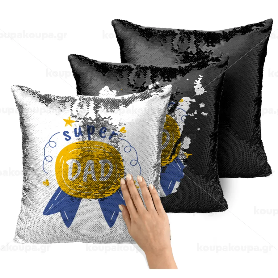 Μπαμπά είσαι για μετάλλιο, Μαξιλάρι καναπέ Μαγικό Μαύρο με πούλιες 40x40cm περιέχεται το γέμισμα