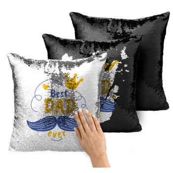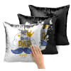 Best dad ever ο Βασιλιάς, Μαξιλάρι καναπέ Μαγικό Μαύρο με πούλιες 40x40cm περιέχεται το γέμισμα
