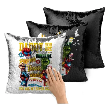 Daddy You Are my Hero, Μαξιλάρι καναπέ Μαγικό Μαύρο με πούλιες 40x40cm περιέχεται το γέμισμα