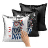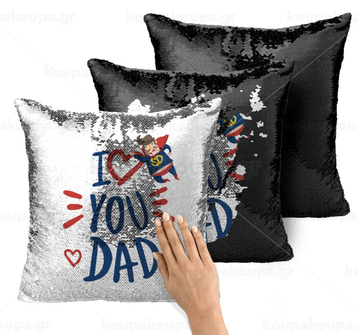Super Dad, Μαξιλάρι καναπέ Μαγικό Μαύρο με πούλιες 40x40cm περιέχεται το γέμισμα