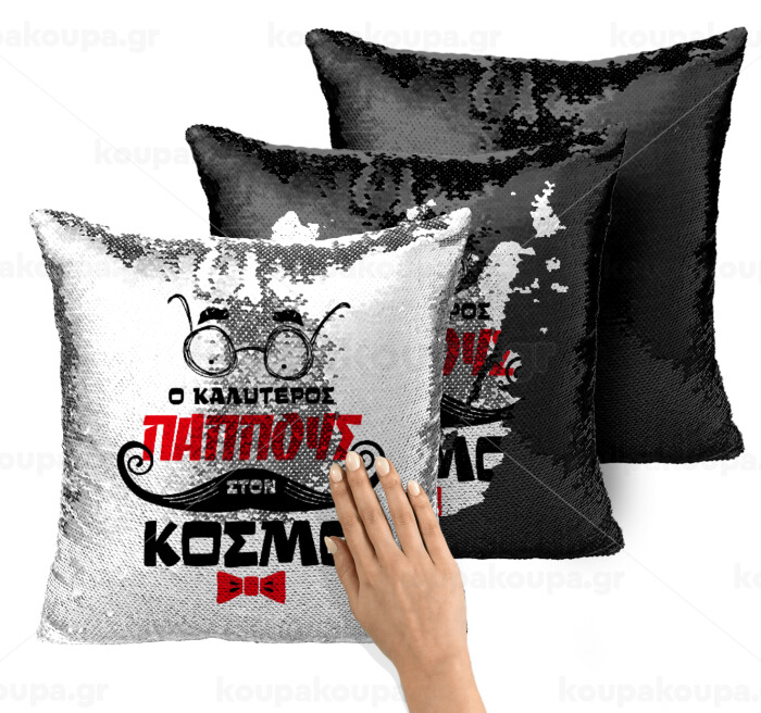 Ο καλύτερος παππούς του κόσμου!, Μαξιλάρι καναπέ Μαγικό Μαύρο με πούλιες 40x40cm περιέχεται το γέμισμα