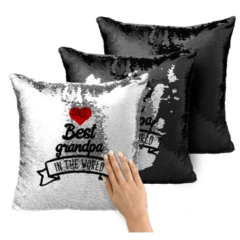 Best Grandpa in the world, Μαξιλάρι καναπέ Μαγικό Μαύρο με πούλιες 40x40cm περιέχεται το γέμισμα