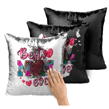 Best mom ever Mother's Day pink, Μαξιλάρι καναπέ Μαγικό Μαύρο με πούλιες 40x40cm περιέχεται το γέμισμα
