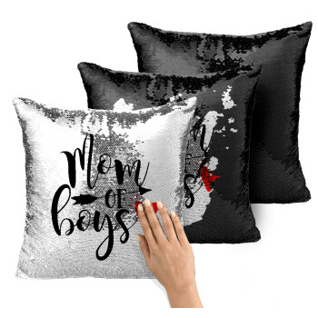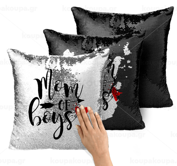 Mom of boys, Μαξιλάρι καναπέ Μαγικό Μαύρο με πούλιες 40x40cm περιέχεται το γέμισμα
