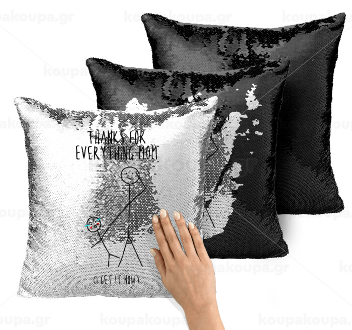 Thanks for everything mom, Μαξιλάρι καναπέ Μαγικό Μαύρο με πούλιες 40x40cm περιέχεται το γέμισμα