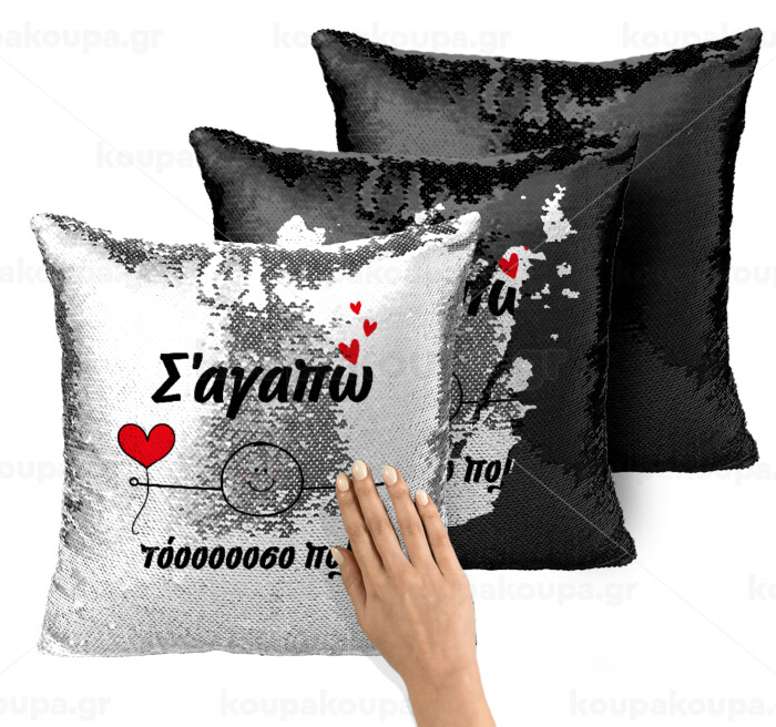 Σ΄αγαπώ τόοοοσο πολύ (Αγόρι)!!!, Μαξιλάρι καναπέ Μαγικό Μαύρο με πούλιες 40x40cm περιέχεται το γέμισμα