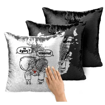 Τι έχεις? Τίποτα!, Μαξιλάρι καναπέ Μαγικό Μαύρο με πούλιες 40x40cm περιέχεται το γέμισμα