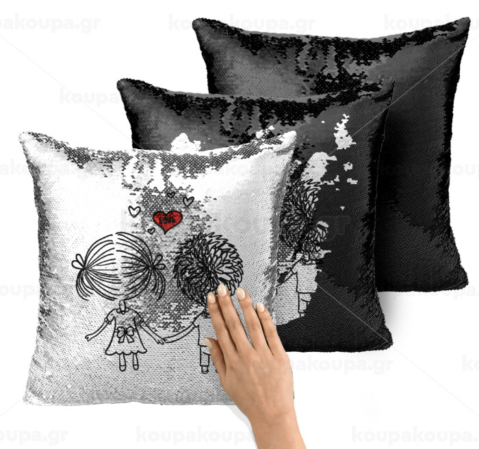 Hold my hand for ever, Μαξιλάρι καναπέ Μαγικό Μαύρο με πούλιες 40x40cm περιέχεται το γέμισμα