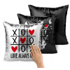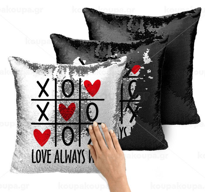 Love always win, Μαξιλάρι καναπέ Μαγικό Μαύρο με πούλιες 40x40cm περιέχεται το γέμισμα