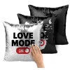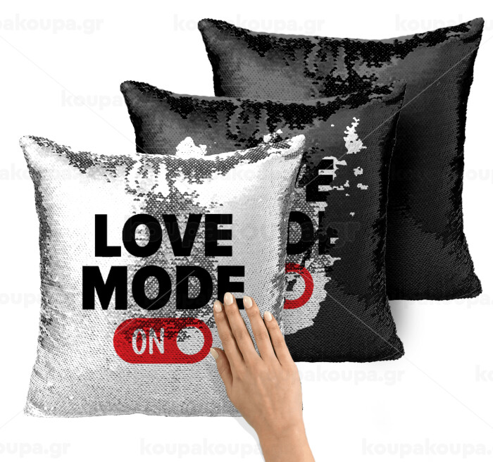 LOVE MODE ON, Μαξιλάρι καναπέ Μαγικό Μαύρο με πούλιες 40x40cm περιέχεται το γέμισμα