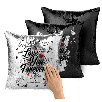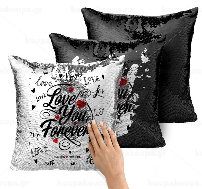 Love You Forever, Μαξιλάρι καναπέ Μαγικό Μαύρο με πούλιες 40x40cm περιέχεται το γέμισμα