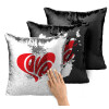 Love, Μαξιλάρι καναπέ Μαγικό Μαύρο με πούλιες 40x40cm περιέχεται το γέμισμα