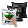 Bulgaria flag, Μαξιλάρι καναπέ Μαγικό Μαύρο με πούλιες 40x40cm περιέχεται το γέμισμα