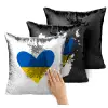 UKRAINE heart, Μαξιλάρι καναπέ Μαγικό Μαύρο με πούλιες 40x40cm περιέχεται το γέμισμα