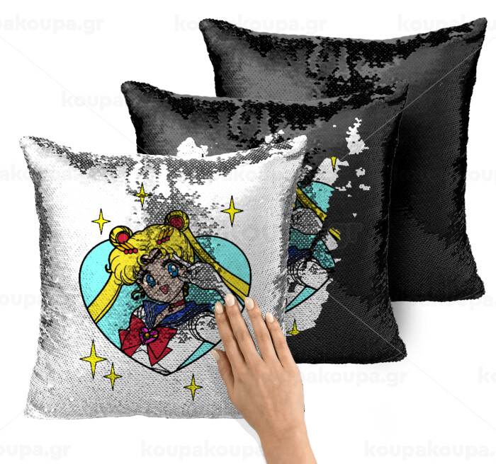Sailor Moon star, Μαξιλάρι καναπέ Μαγικό Μαύρο με πούλιες 40x40cm περιέχεται το γέμισμα
