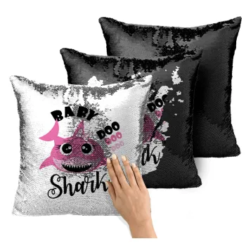 Baby Shark (girl), Μαξιλάρι καναπέ Μαγικό Μαύρο με πούλιες 40x40cm περιέχεται το γέμισμα
