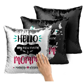 Hello, my new name is Mommy, Μαξιλάρι καναπέ Μαγικό Μαύρο με πούλιες 40x40cm περιέχεται το γέμισμα